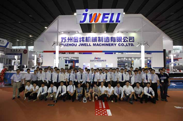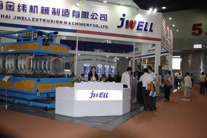 金緯機械對雅式展向來非常重視,本次展會,我司分別在1.1館和5.1館租用了700多平方米的展區,展示了新型塑料擠出機,波紋管臥式成型機,1600真空箱,瓦楞板成型,中空塑料成型機,高產量三輥壓光機,擠出平模頭,大型精密工業用輥筒,破碎機,塑料回收輔助設備等***新產品。***展示了金緯機械技術創新、節能環保、產量高、性能優的產品特征。